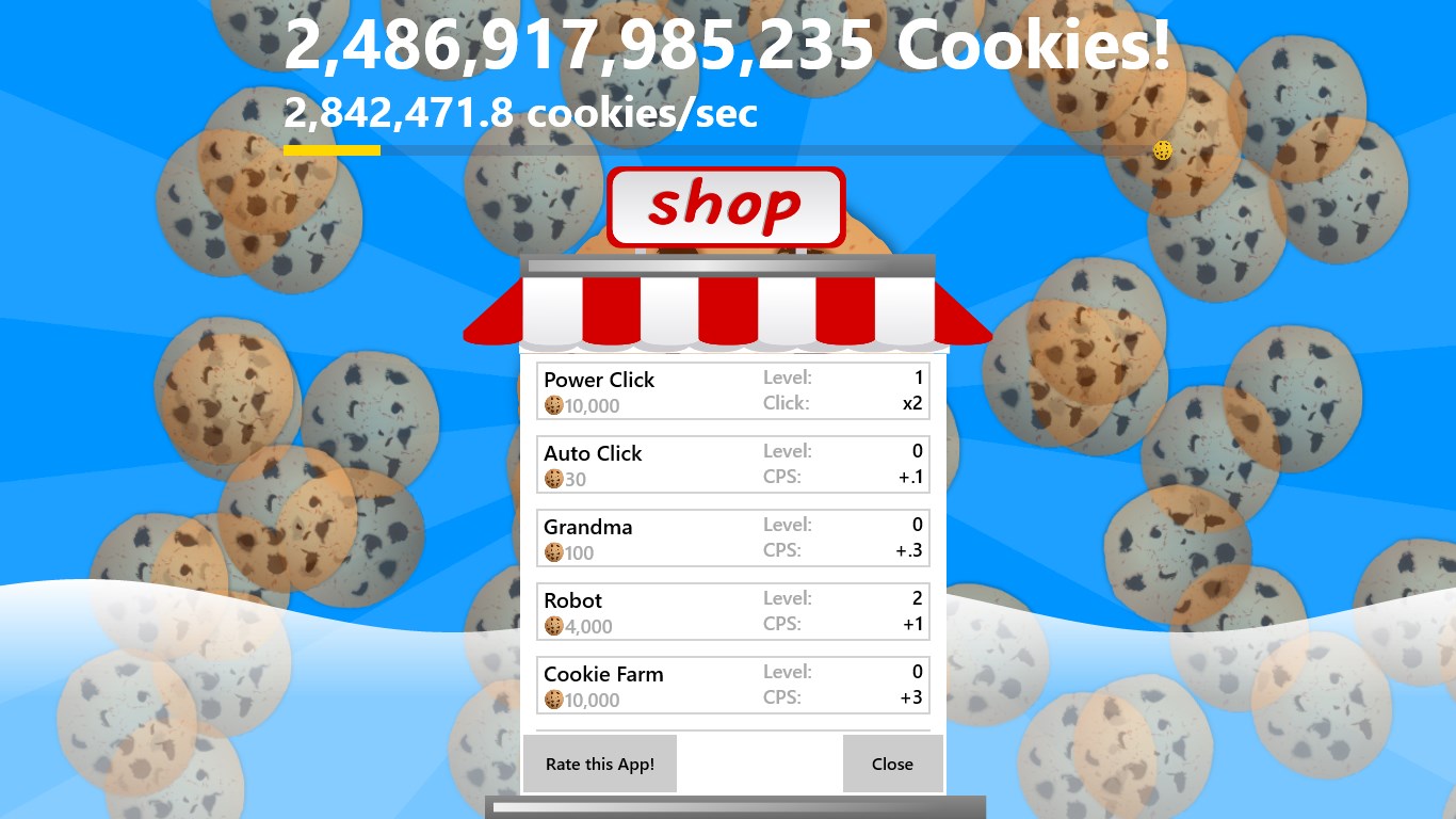 • tap to make cookies, then buy things that make cookies for you. Also subscribe for more content in the future. Tell me below with your cps as well! Randomness (and hetalia if you must). Cookie clicker is a game about making an absurd amount of cookies. Legacy, or ascension, is a game mechanic added to the game on the 8th of february 2016, though it was in beta for about a year and half before that. About 2,325 results (0.66 seconds). Play this game for free, no ads, and no sign in required. You can mostly reset the game to get boosts(aka ascend). How many people leave cookie clicker running in the background while playing on the hypixel server? The poll is up there so i don't need the comment section. Cookie clicker aims to earn as fast cookies as possible. Cookie clicker is mainly supported by ads.